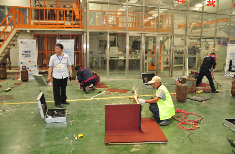 此次競賽包括改性瀝青防水卷材施工(單人賽)、高分子卷材施工(單人賽)、噴涂施工(雙人賽)三項施工技能。