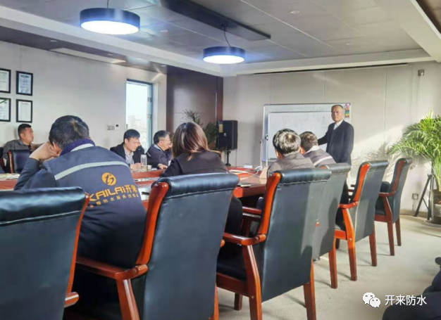 2021年2月22日是開來濕克威防水科技股份有限公司華中基地全體管理人員上班第一天,下午1:30,全體管理人員準時到達會場,參加新年第一課的培訓。培訓內容分四大版塊,華中基地執行總經理馮治銘進行了基本制度、安全方面的培訓,制度是企業管理過程中不可缺少的硬指標,沒有制度不成方圓;而員工的安全也是企業一項重大的責任,這關乎員工整個家庭的幸福。