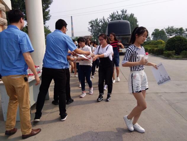 接待人員為老師和每位學生準備了礦泉水和公司宣傳頁,炎炎夏日,這樣一個小細節讓師生們感受到了公司貼心周到的服務