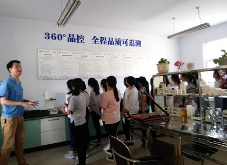 在王經理的帶領下,學院師生們依次參觀了標準化實驗室、高分子車間、卷材生產車間、立體式倉儲庫,王經理向學生們講解了公司的產品分類、車間分布、現代化生產設備以及企業文化。